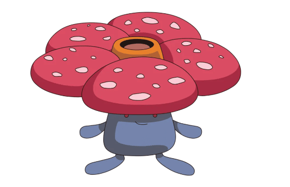 Vileplume can shake, flap, or burst its petals into bloom with a bang in order to release clouds of pollen.