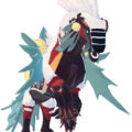 The Aseliorus is a quadrupedal, anteater like creature covered in various stone plates and flora. Its head is slim and long, with a set of small eyes and ears as well as a long and thin tongue. Its body is bulky, with its upper body being covered in long, flowy fur and stone plates resembling ruins. Different kinds of flora, such as clovers and moss, can be seen growing on its body as well. Standing on four limbs, its forarms end in a set of powerful paws equipped with a set of long, sharp claws. Its hind legs, which are a bit smaller than its forearms, end in paws with three toes each. It has a large, flowy tail, which is covered in the same flora and stone plates as its upperbody. A few chunks of broken stone plates can be seen floating above its tail.