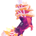 Kiiwins are small photovore creatures, they resemble kiwi birds, with a stocky body, short legs and a sharp, thin, pointy beak and a kiwi fruit pattern on their necks, coxofemoral joint area, and legs. It has two pairs of average-sized wings, which sport kiwi patterns. Several plumage tufts can be seen on their backs, chest and head base, and a pair of elongated, kiwi-themed feather-like horns can be seen sprouting from their foreheads. whisker-like feathers can be seen stemming from the beak sides. Its color palette resembles that of kiwi fruits.