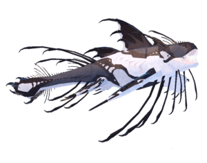 The Magnacetus is a creature that heavily resembles an orca, with a large fin on its head and an oddly-shaped tail. Its colors consist of purple-greys, blacks, light peachy pinks in the mouth, pale blue, and yellow teeth. An unusual feature of the Magnacetus is its four large, webbed, clawed flippers.